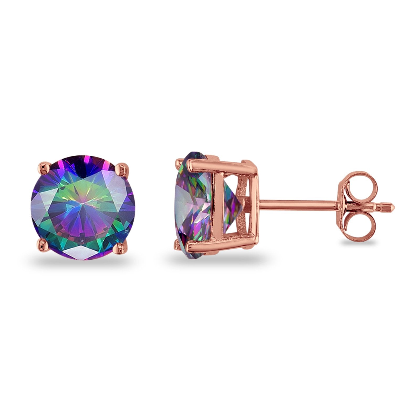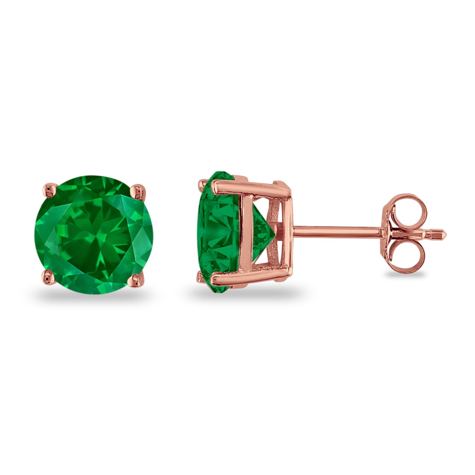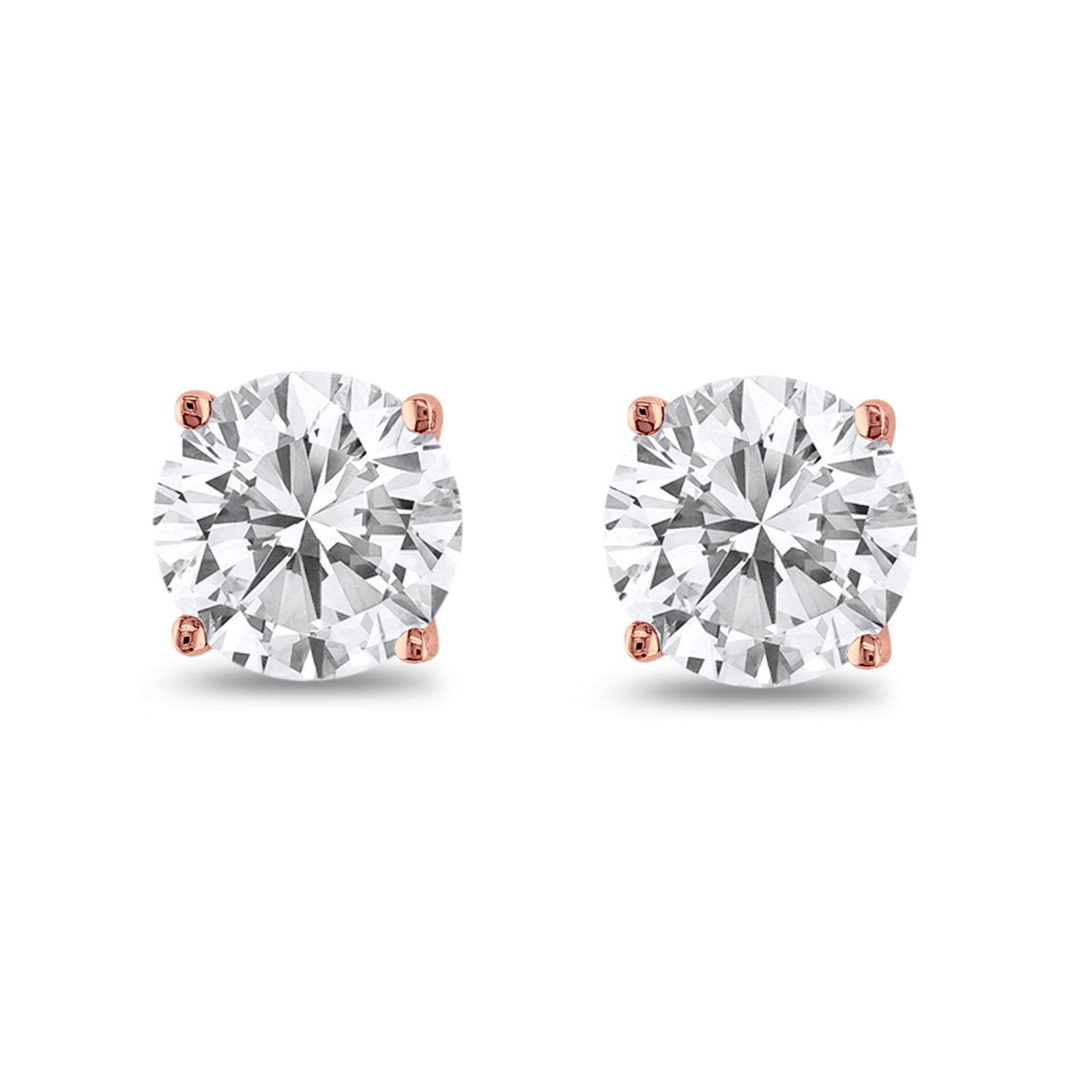 925 Sterling Silver 4 Prong Butterfly Back Rose Tone Round Casting CZ Stud Earrings