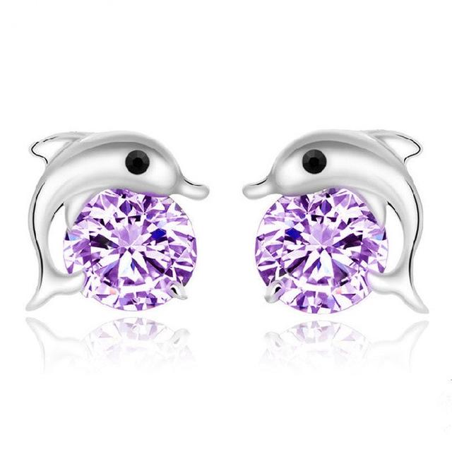 High Quality 925 Sterling Silver Plated Romantic Dolphin Love Stud Earrings For Women