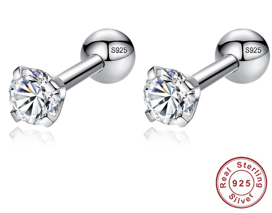 Small Round CZ Zircon 925 Sterling Silver Earrings For Women