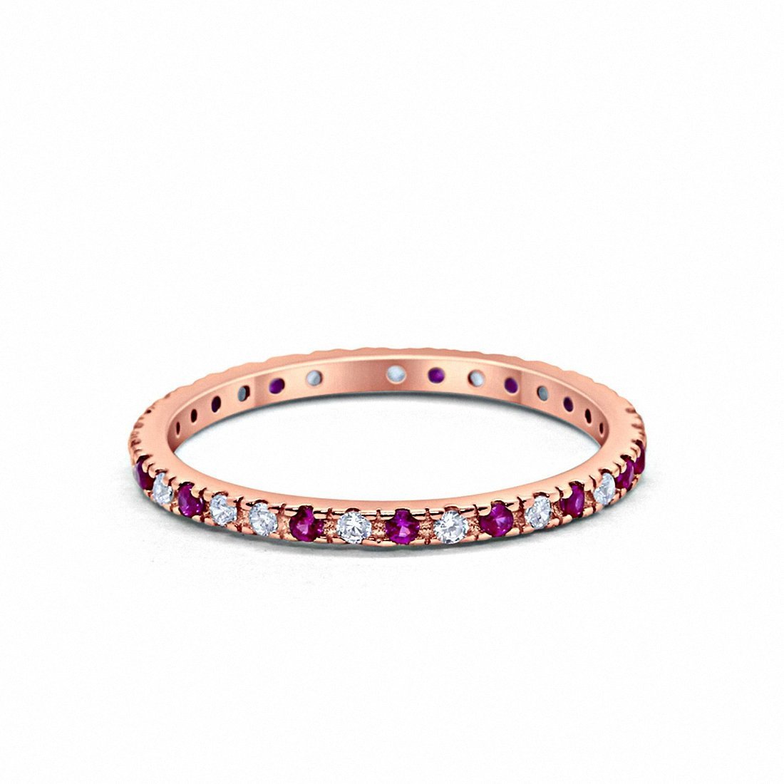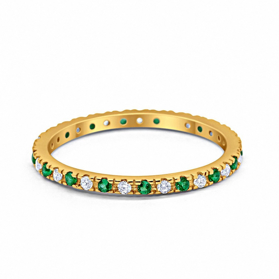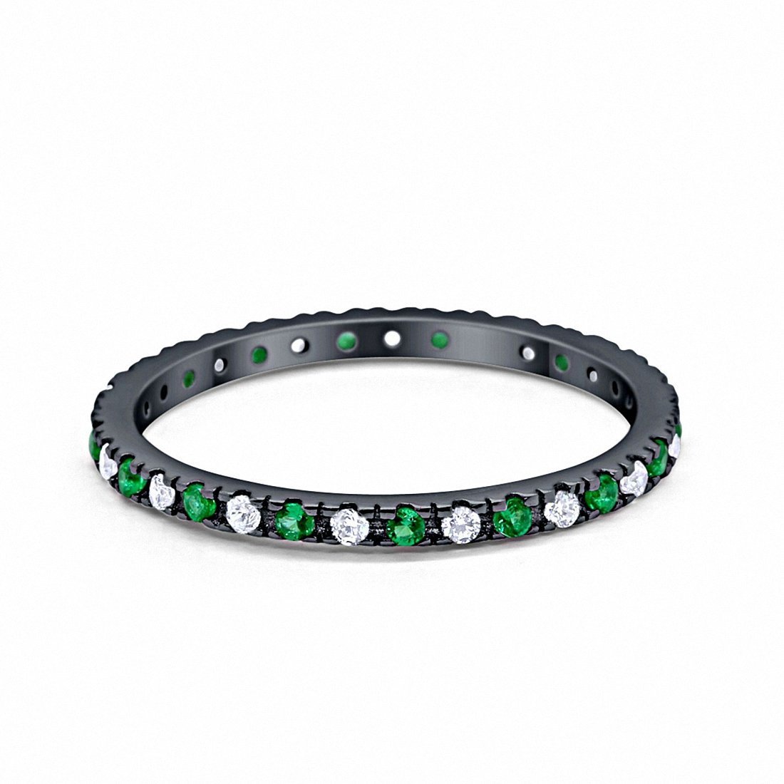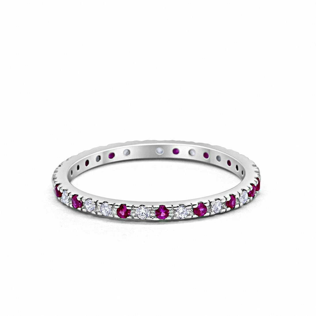 925 Sterling Silver Full Eternity Simulated Blue Sapphire & CZ Band Ring