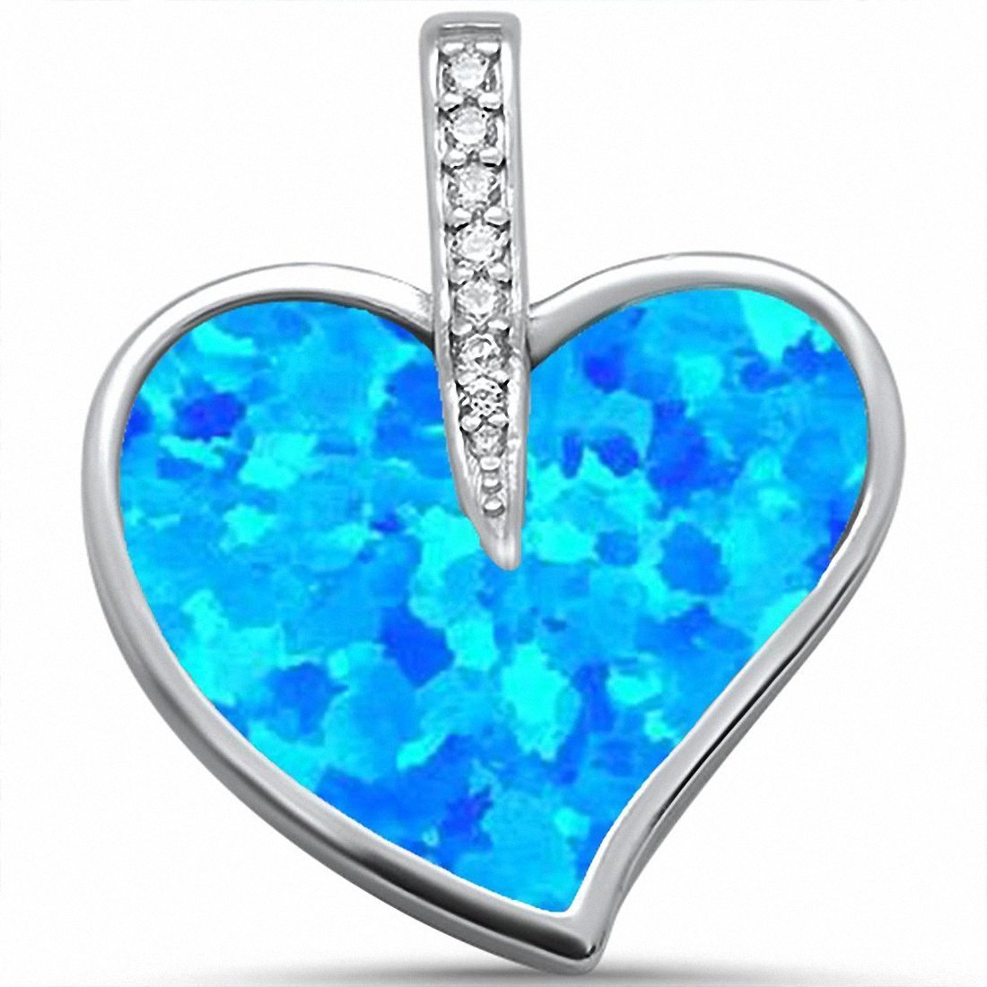 925 Sterling Silver Art Deco Charm Round CZ Heart Pendant