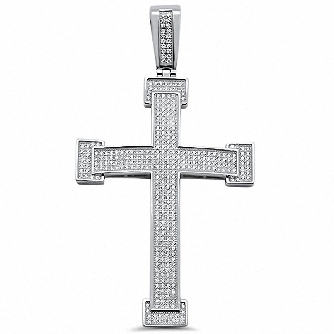 925 Sterling Silver Art Deco Micro Pave CZ Hip Hop Cross Pendant