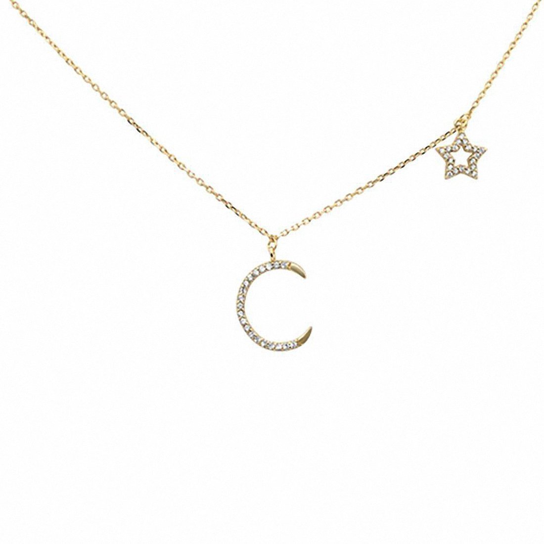 925 Sterling Silver Round CZ Dangling Star Moon Necklace Pendant