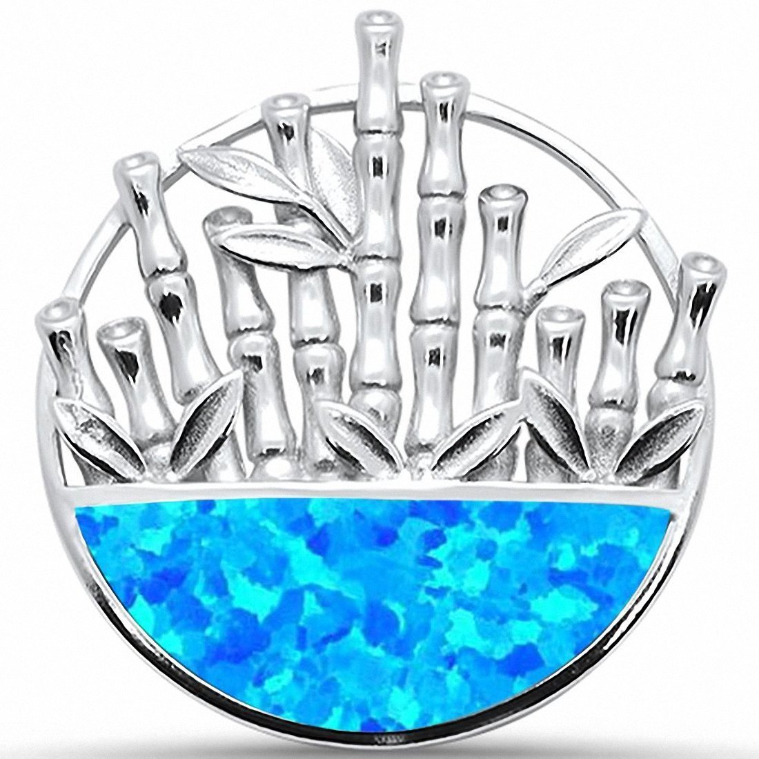 925 Sterling Silver Simulated Stone Bamboo Pendant