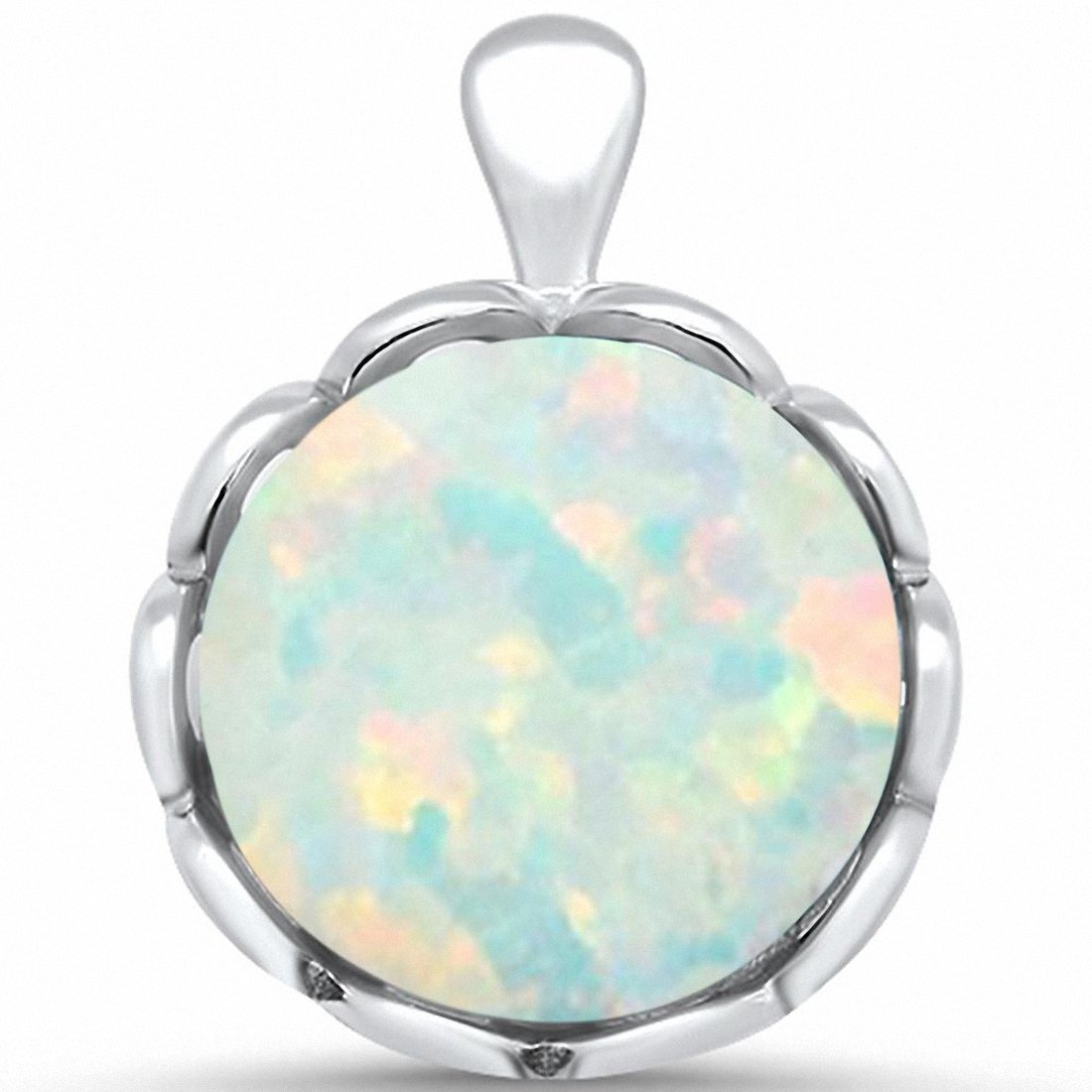 925 Sterling Silver Simulated Stone Charm Round Fashion Pendant