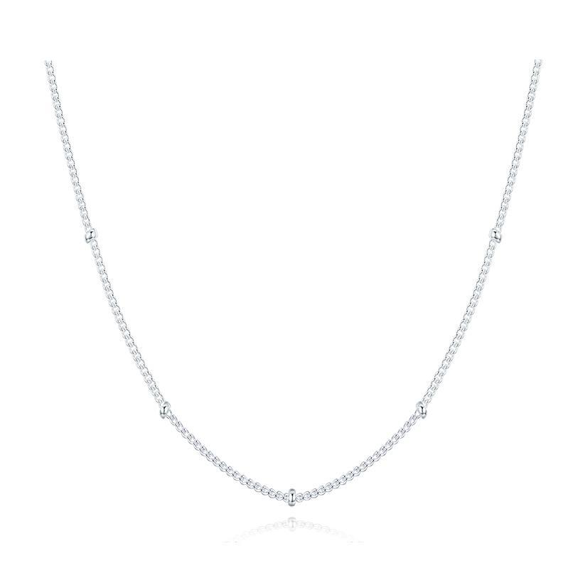 925 Sterling Silver Beads Curb Chain Choker Necklaces For Women