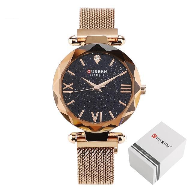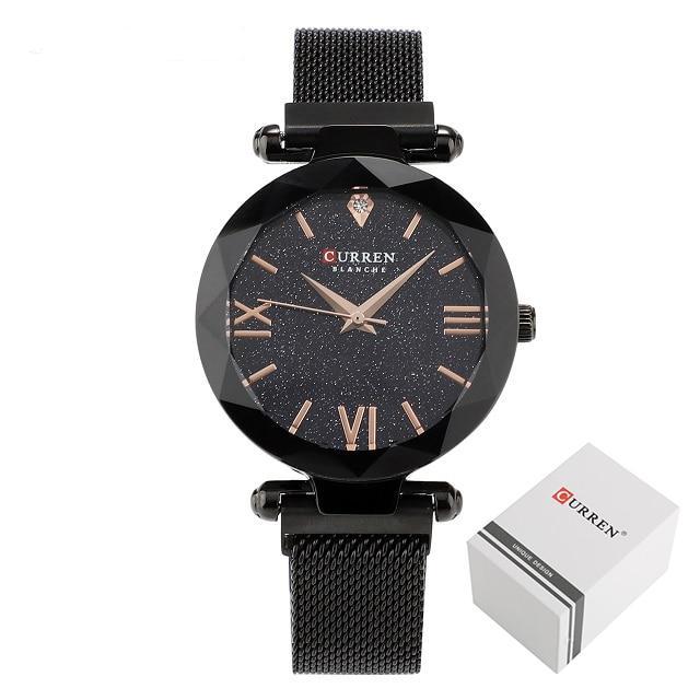 Magnet Buckle Starry Diamond Geometric Surface Wrist Watch For Women