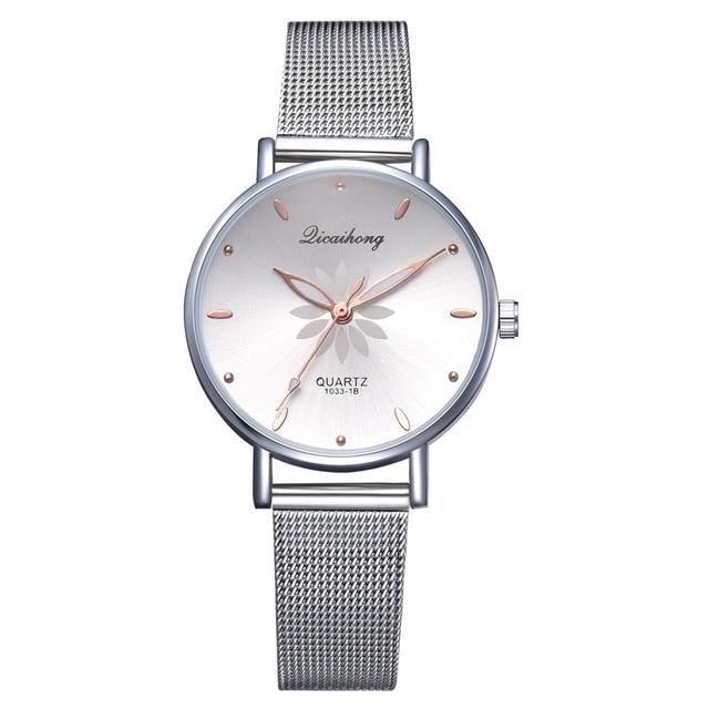 Silver Popular Pink Dial Flowers Wrist Watch For Women